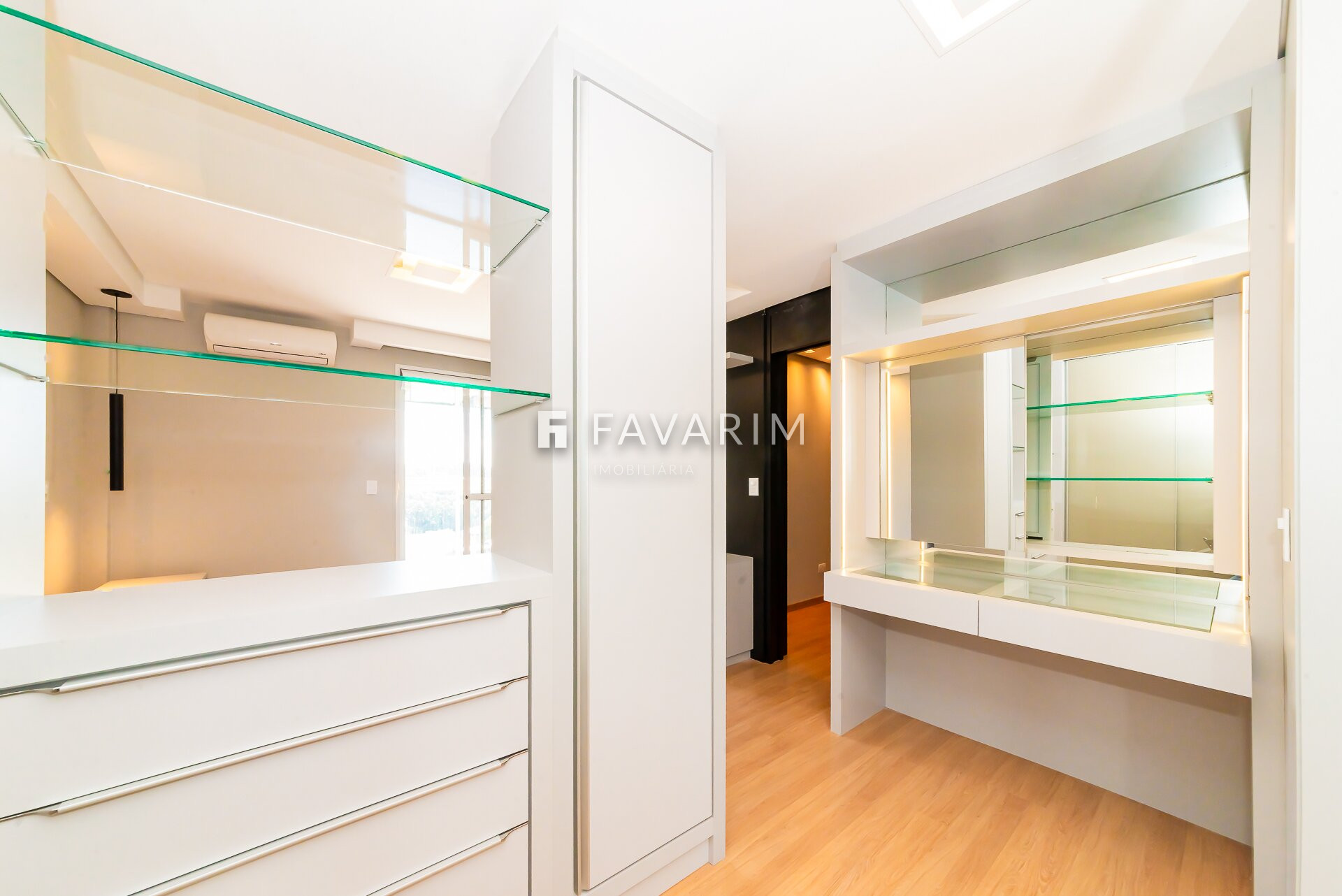 Na área íntima, são 3 suítes completamente mobiliadas e equipadas com ar-condicionado, sendo a suíte principal com closet, penteadeira e uma ampla sacada. O imóvel conta ainda com 3 vagas de garagem, enquanto o condomínio oferece espaço gourmet, playground e espaço fitness.
