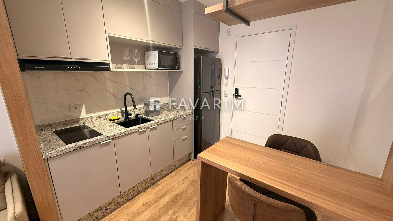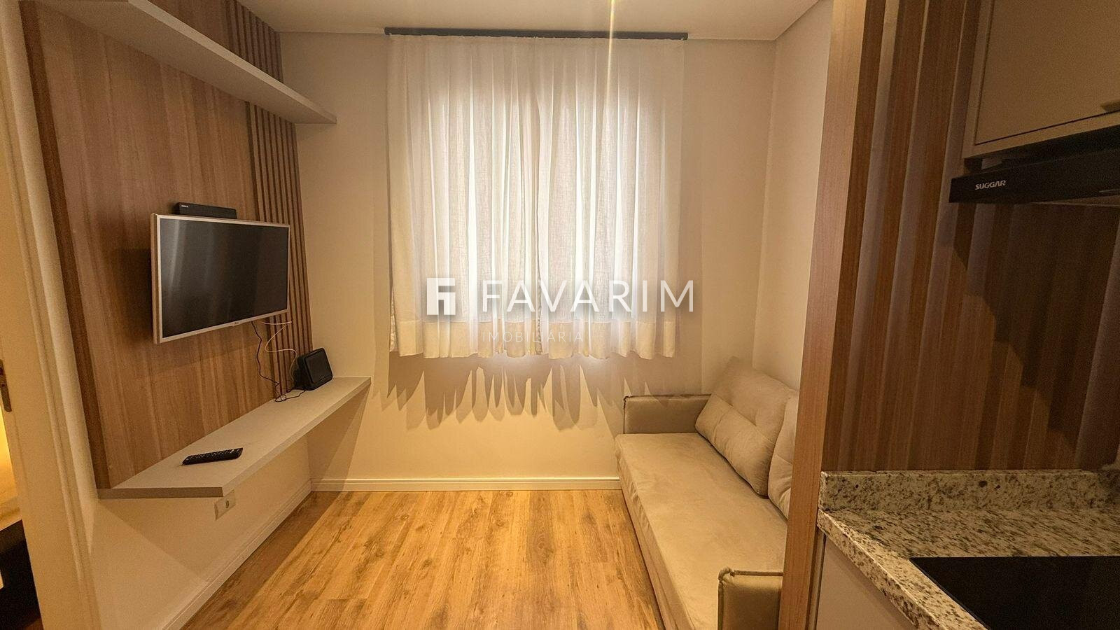 Com 23m² privativos, o imóvel será entregue totalmente mobiliado, pronto para locação ou residência