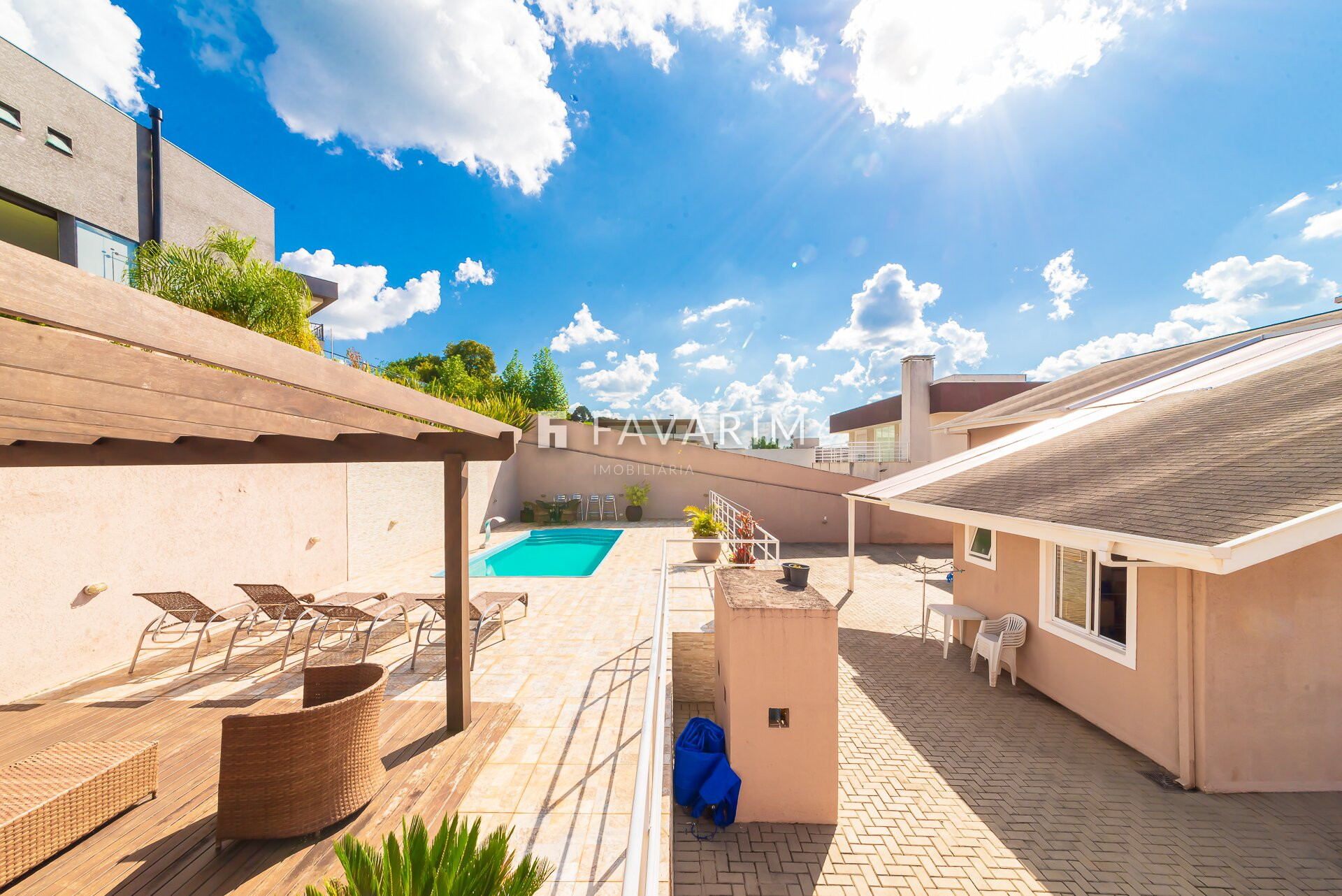 A casa dispõe de sala de estar e jantar integradas, sala de TV, cozinha planejada integrada com churrasqueira, proporcionando praticidade e excelente espaço para receber familiares e amigos. São 4 dormitórios, sendo 1 suíte, além de 4 banheiros distribuídos de forma funcional para atender toda a família com conforto. Na área externa, o imóvel conta com um amplo terreno de 1.058 m², paisagismo agradável e piscina privativa, criando um ambiente perfeito para lazer e momentos de descanso. A área construída privativa é de 245,22 m², com projeto que valoriza iluminação natural, ventilação e bem-estar.