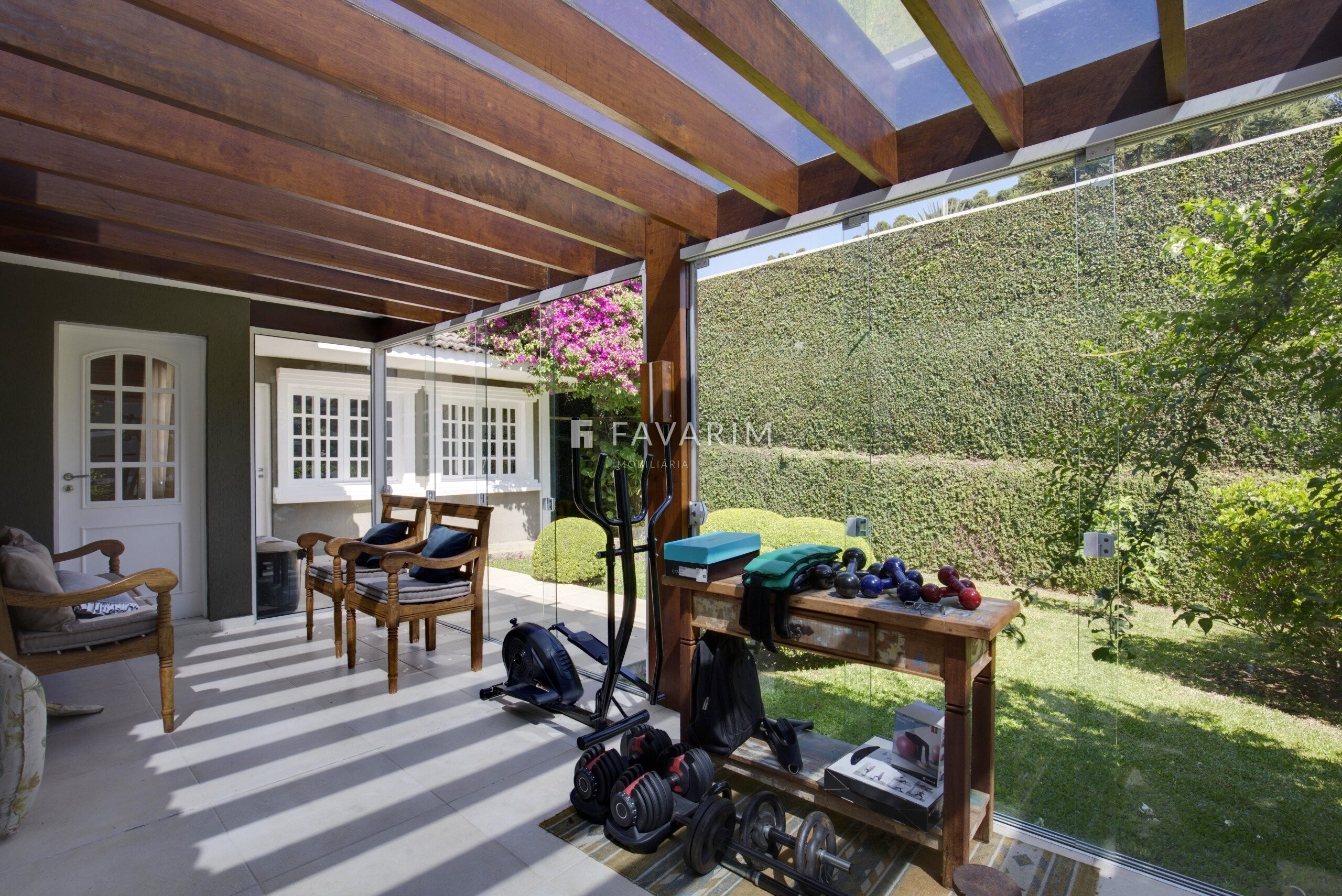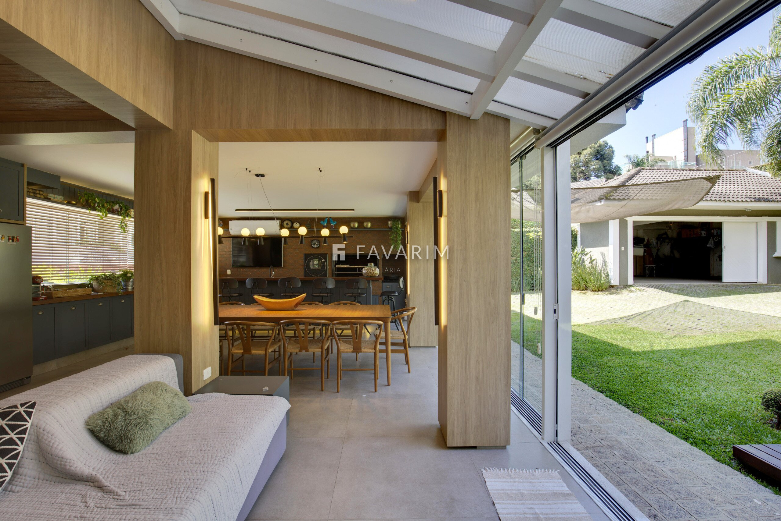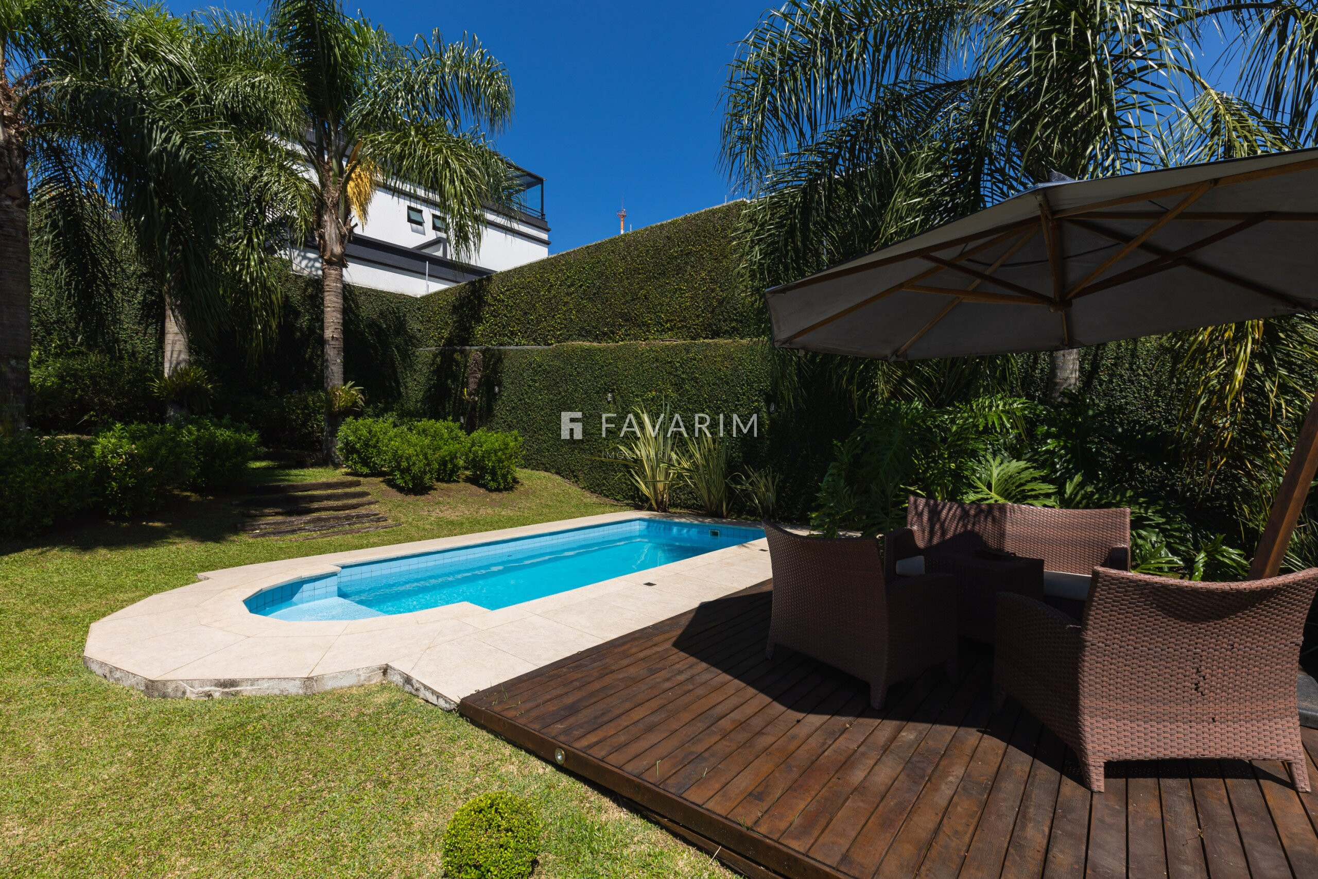 A área externa é um dos grandes destaques, com piscina aquecida e amplo espaço de jardim, ideal para momentos de lazer e convivência.