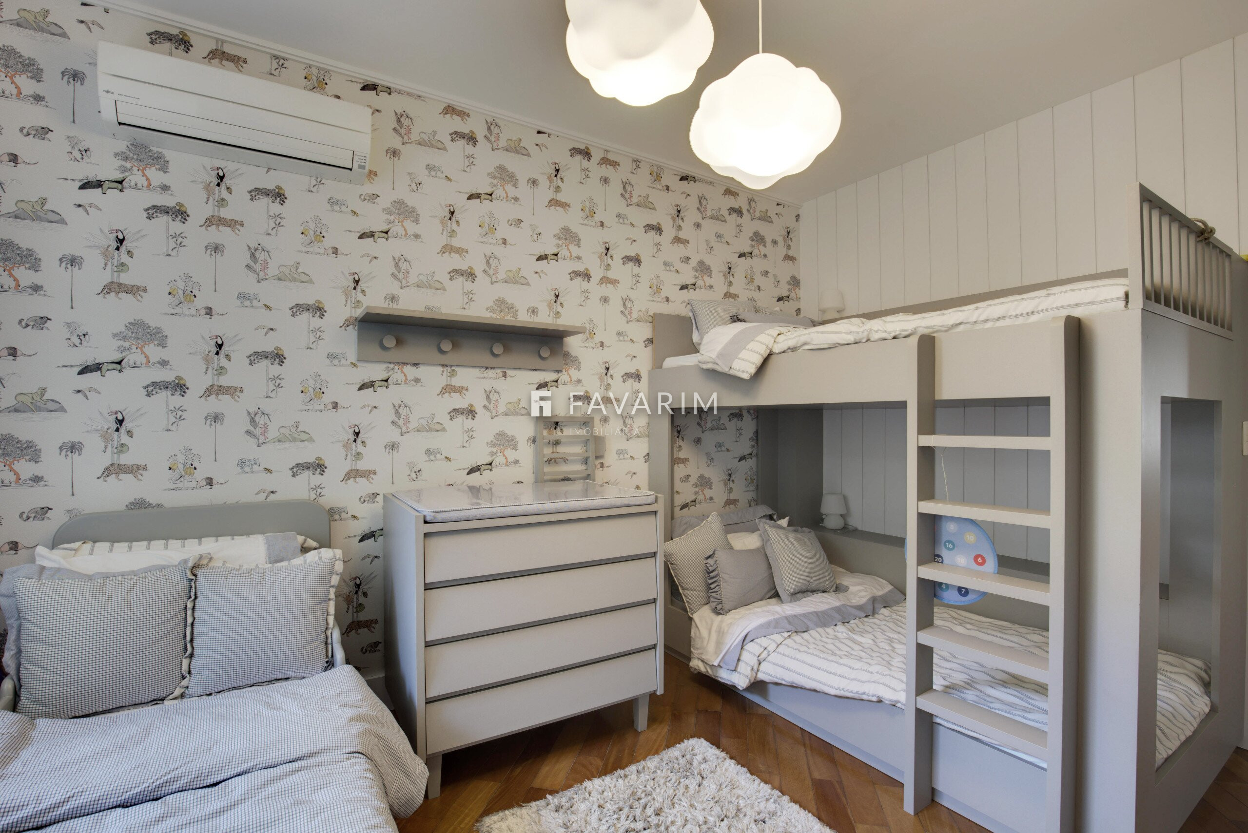 O imóvel conta originalmente com 4 quartos, sendo 2 suítes e 2 demi-suítes. Atualmente está configurado com uma ampla suíte master, com dois closets e dois banheiros, além de duas demi-suítes, podendo ser facilmente revertido ao layout original.